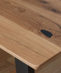 Picioarele metalice, finisate în negru mat, oferă stabilitate și un contrast contemporan ce pune în valoare calitățile naturale ale lemnului.