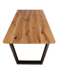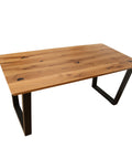 Această masă elegantă îmbină frumusețea naturală a lemnului masiv cu rezistența metalului, aducând un aer modern și sofisticat în orice spațiu.